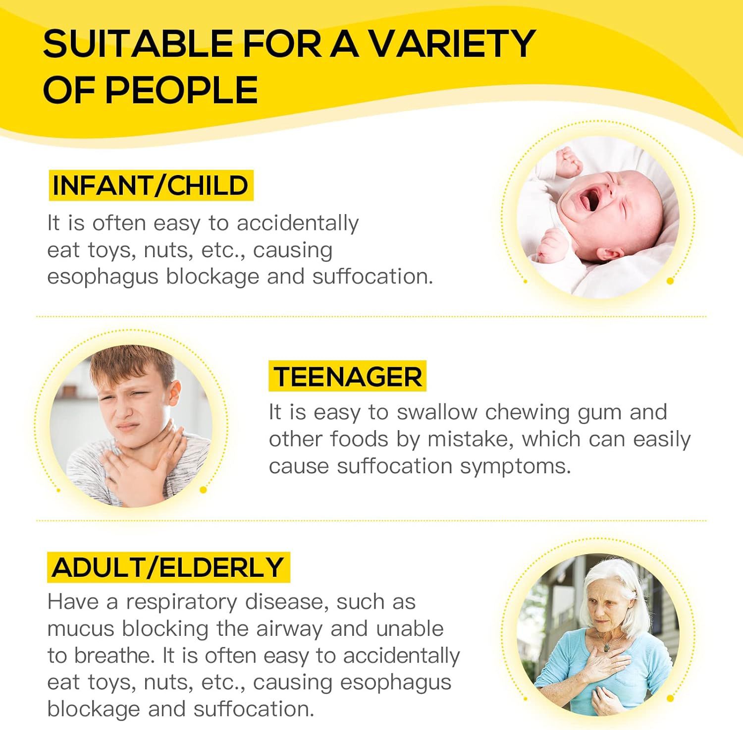 ? Effective suction power (as shown in product use image) – Designed to rapidly extract foreign objects from the airway, potentially saving lives within seconds.