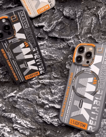 ? Clear Back with Printed Graphic Design (visible design) – Stylish see-through body with industrial-style artwork, combining aesthetics with function.