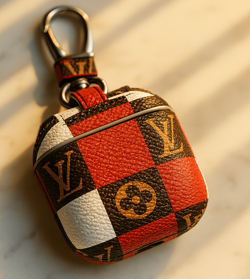 A stylish, rugged protective cover designed specifically for Pods Pro 2 charging cases. Wrapped in durable PU leather with a bold yellow camouflage print, it snaps shut to shield your earbuds from scratches, drops, and dust. An integrated metal carabiner lets you clip it to bags, belts, or keys for hands-free portability—without adding bulk.