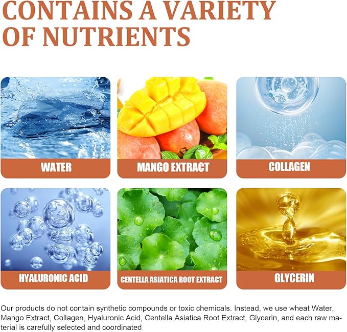 ?? Natural Ingredients: Contains Glycerin, Mango Extract, and Centella Root Extract for deep nourishment.