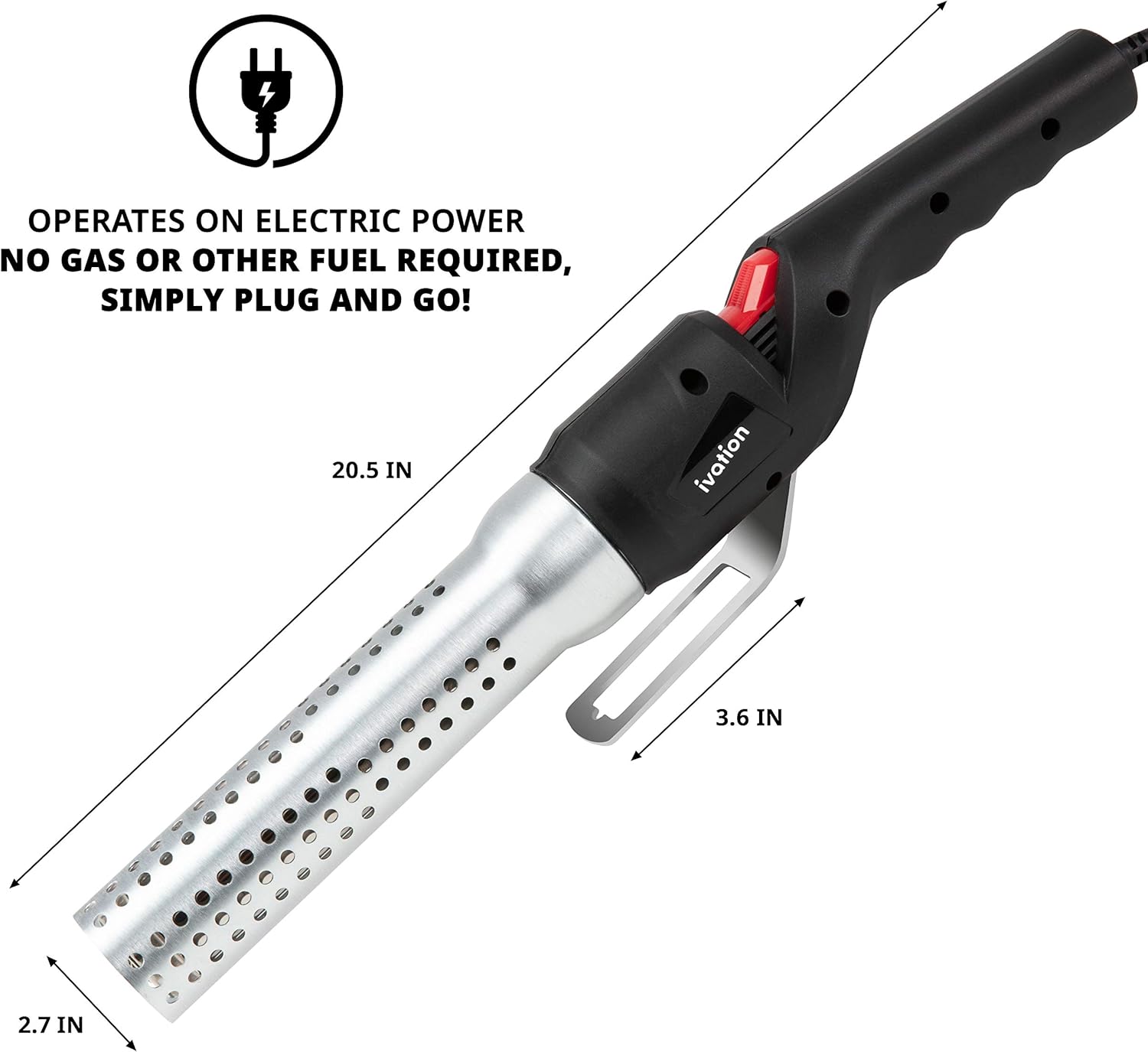 Electric Charcoal Lighter Torch delivers fast, dependable heat for starting BBQ grills, indoor fireplaces, outdoor fire pits, wood-burning pizza ovens, smokers, and chimineas—no flames necessary! -