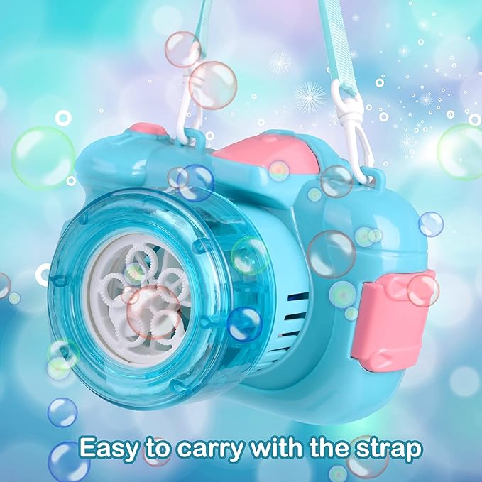 Photogenic Straps: Each camera bubble machine comes with easy-to-carry straps and simple-to-install bubble liquid receptors. Just press the shutter trigger to release a cascade of bubbles, all while enjoying a leak-free and safe play experience.
