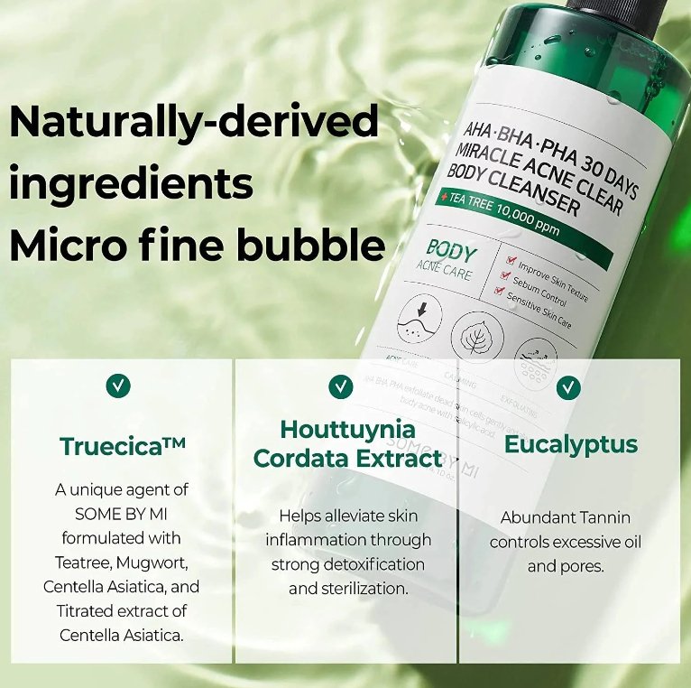- ?? Transform Your Skin: Experience clear, radiant skin with the HA-BHA-PHA 30 Days Miracle Acne Clear Body Cleanser.