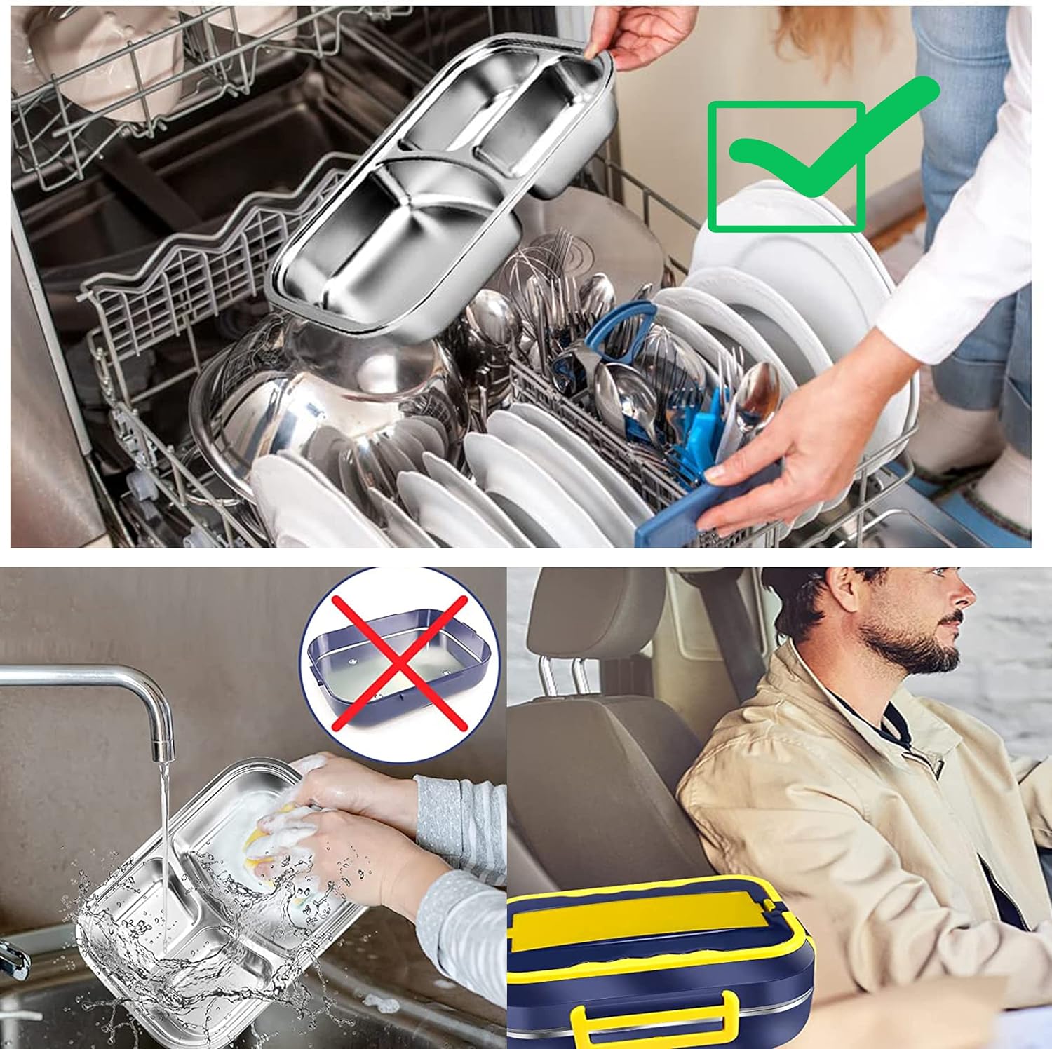 Heated Lunch Box with 3-Compartment Stainless Steel Tray – A convenient, portable food warmer with dual power options and an included carry bag for meals on the go.