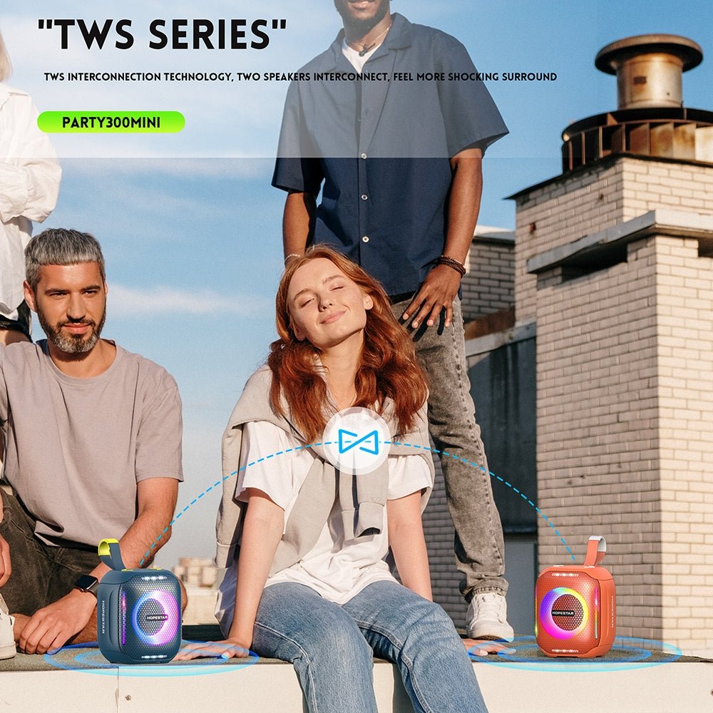 The Hopestar Party300 Mini is a powerful and compact Bluetooth speaker designed to light up your music experience. Featuring vibrant LED lighting and deep bass, it's perfect for parties, travel, and everyday music enjoyment.
