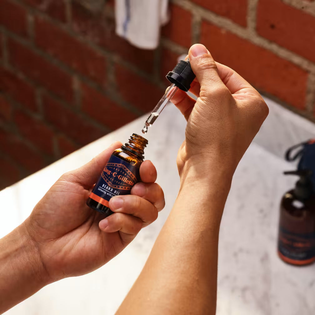 King C. Gillette Beard Essentials Set – A grooming duo featuring a refreshing beard & face wash and a softening beard oil, designed for daily beard care and maintenance.