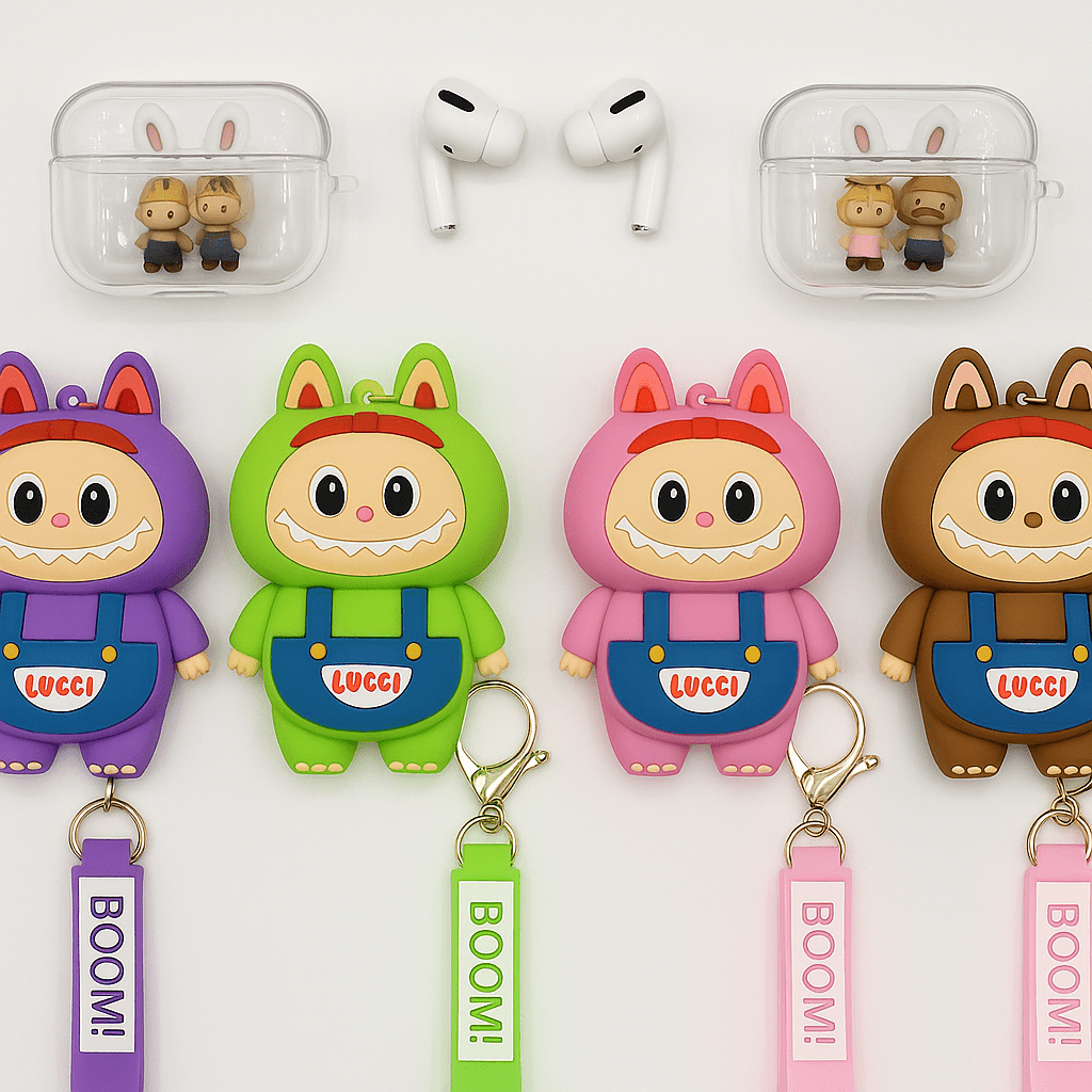 Add a pop of fun to your AirPods with these adorable monster-style cartoon cases! Designed with vibrant colors and detailed 3D characters, these protective cases come with a matching "BOOM!" wrist strap and cute keychain—perfect for kids, teens, or anyone who loves playful accessories.