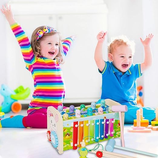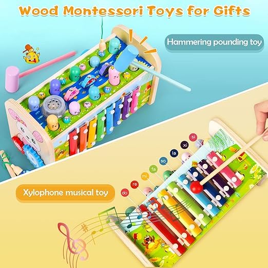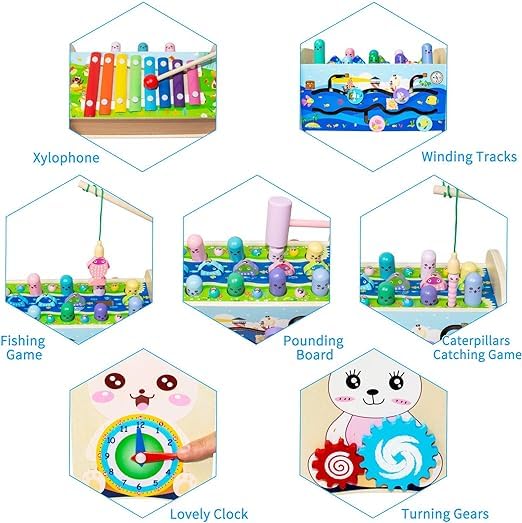 The Multi-purpose Ground Mouse is a versatile 7-in-1 wooden educational toy designed for children aged 3 years and above. It combines multiple fun activities in one set, such as hammering, fishing, music play, shape sorting, and learning time, making it an all-in-one interactive toy. This engaging playset helps children develop fine motor skills, hand-eye coordination, and cognitive abilities while providing endless hours of entertainment.