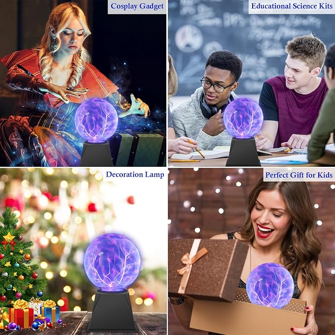 Plasma Light (Plasma Sphere) – A decorative plasma ball lamp that creates colorful lightning-like sparks inside a glass sphere, reacting to touch and sound for a mesmerizing visual effect.