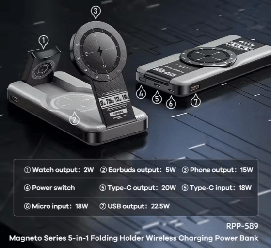 - ?? 5-in-1 Multifunctional Design: Combines wireless charging and a folding holder for unmatched convenience.