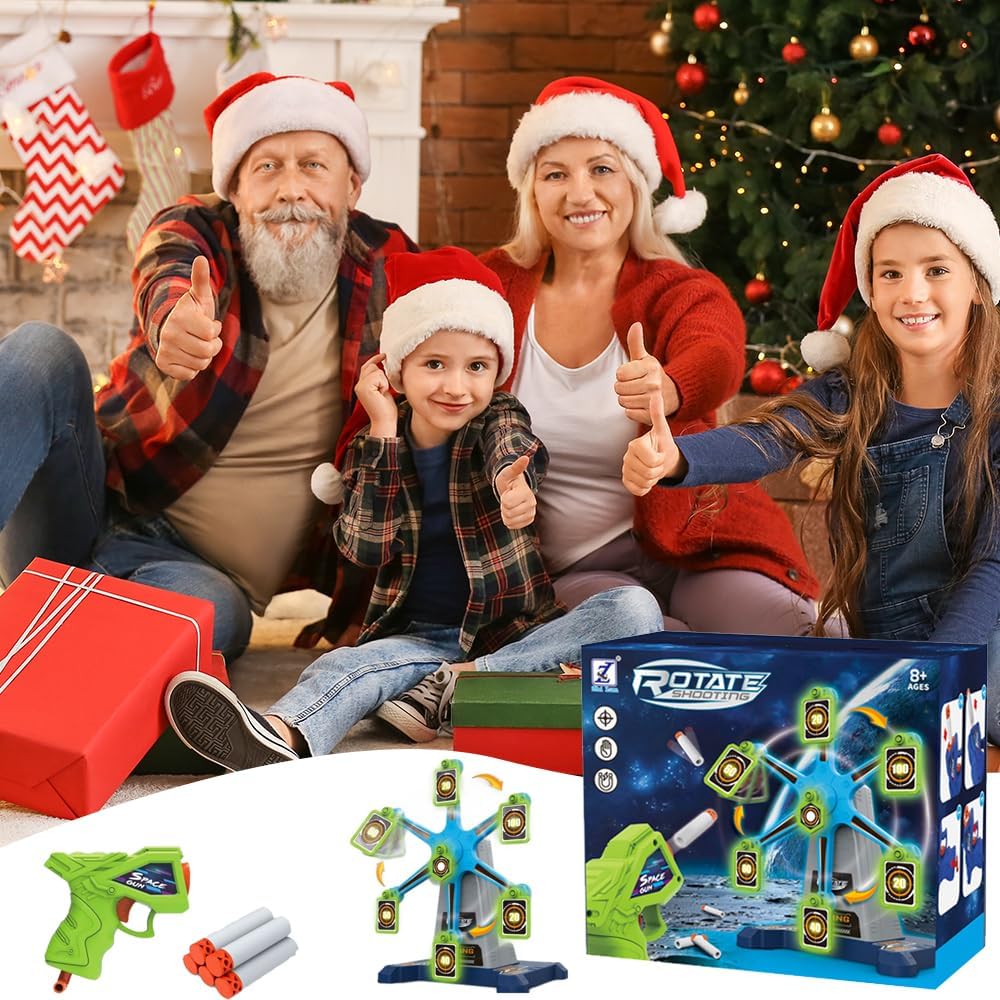 Rotate Shooting Target Game – An interactive electronic shooting set featuring a motorized rotating target wheel and soft foam darts, designed for kids 8+ to enhance accuracy, reflexes, and fun.