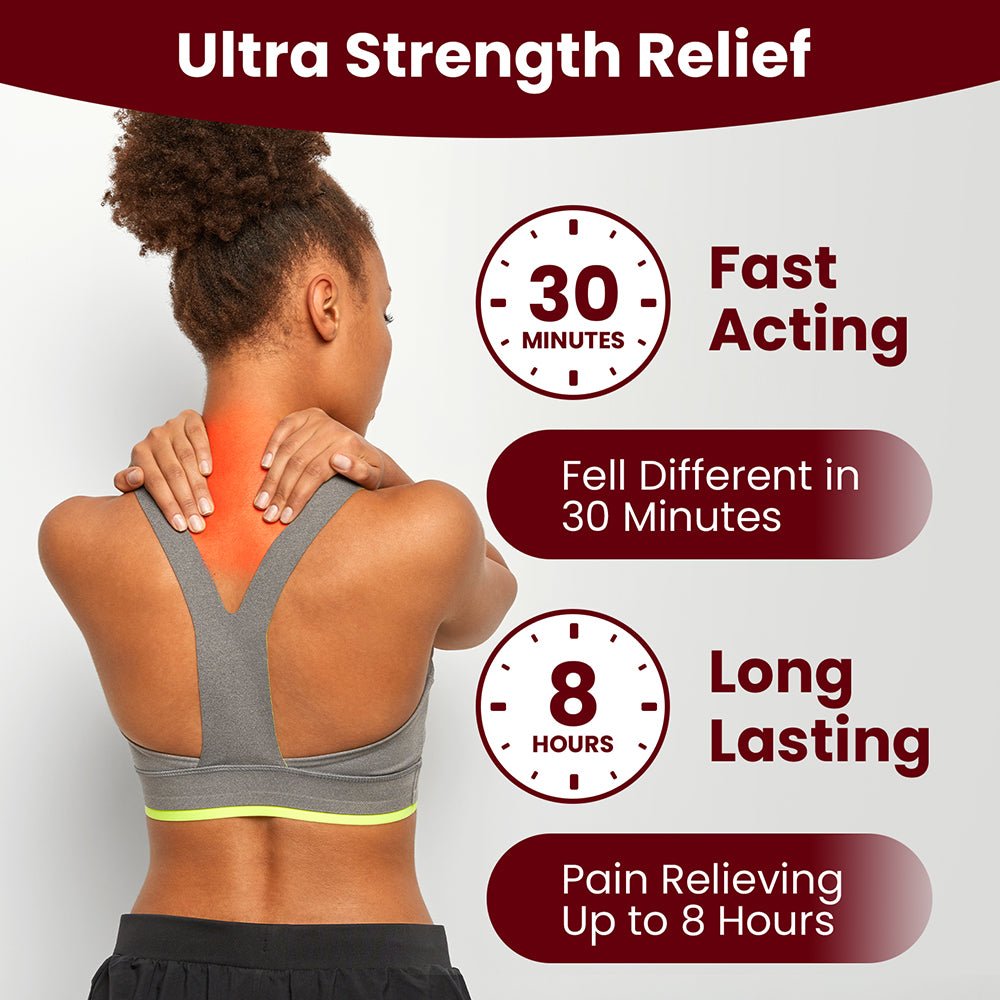 ? Targeted Relief (front and back labels) – Helps relieve neck, shoulder, waist, leg, knee, and back discomfort due to strain, cold/dampness, or injury.