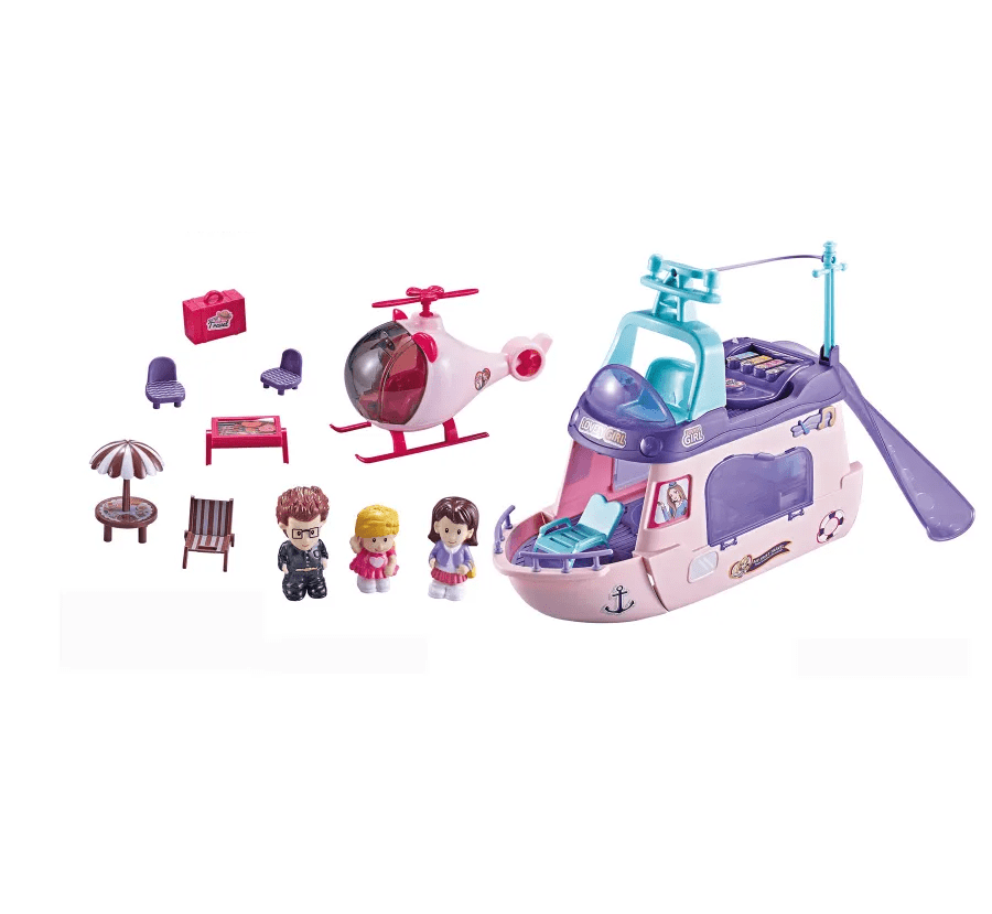 ?? 2-in-1 Playset – ??? Fashion yacht + ?? helicopter for double the fun.